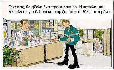 Ο φαρμακοποιός του δίνει τα προφυλακτικά και καθώς ο νεαρός φεύγει επιστρέφει και του λέει: